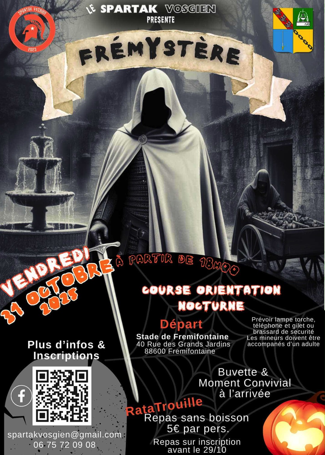 Le Spartak Vosgien donne rendez-vous aux amateurs de sensations fortes le vendredi 31 octobre 2025 pour une soirée d’Halloween pas comme les autres. L’événement Frémystère, organisé à Frémifontaine, propose une course d’orientation nocturne à vivre à la lampe torche.