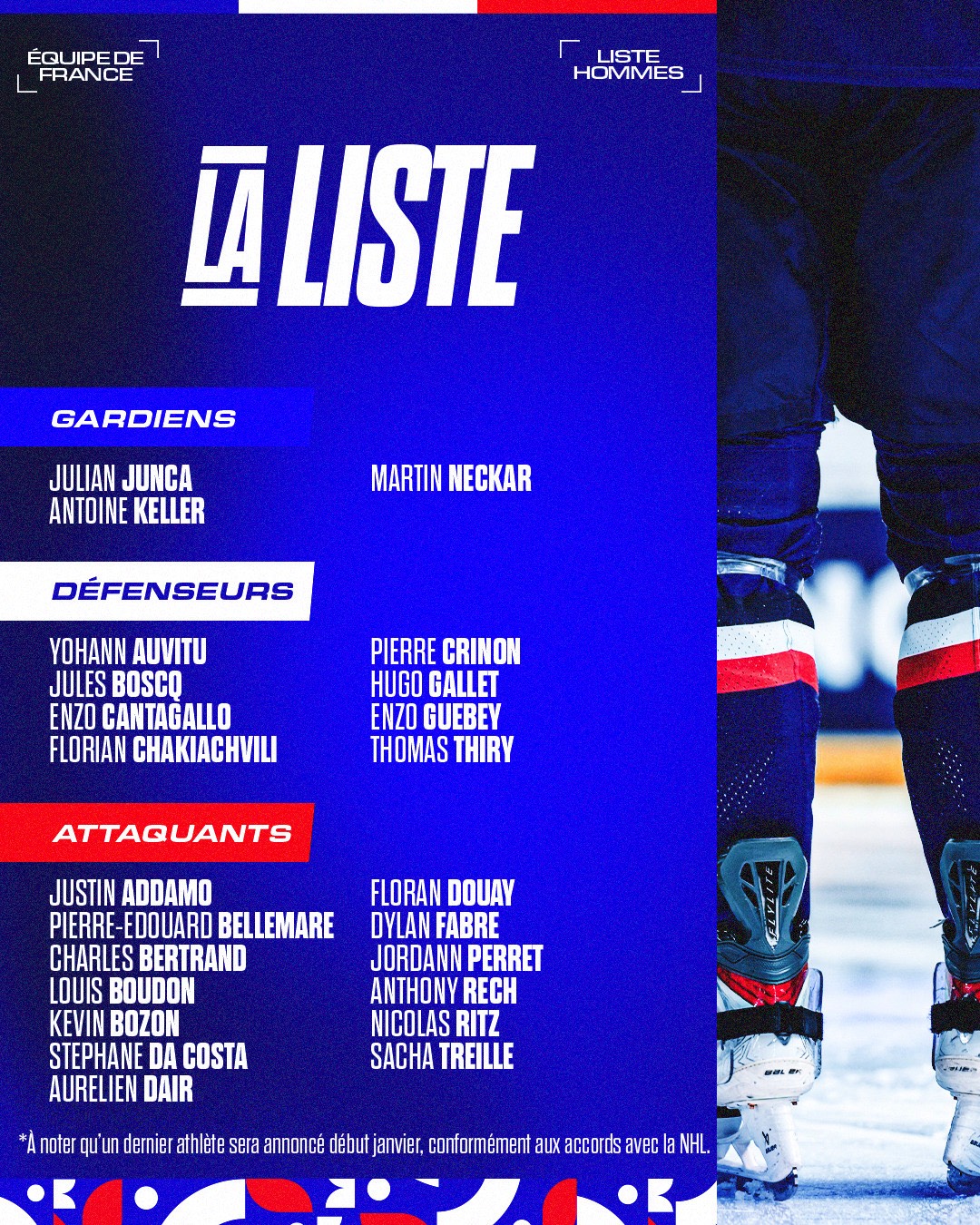 Plus d'infos : https://www.hockeyfrance.com/a-la-une/2025/12/jeux-olympiques-les-listes-des-equipes-de-france/