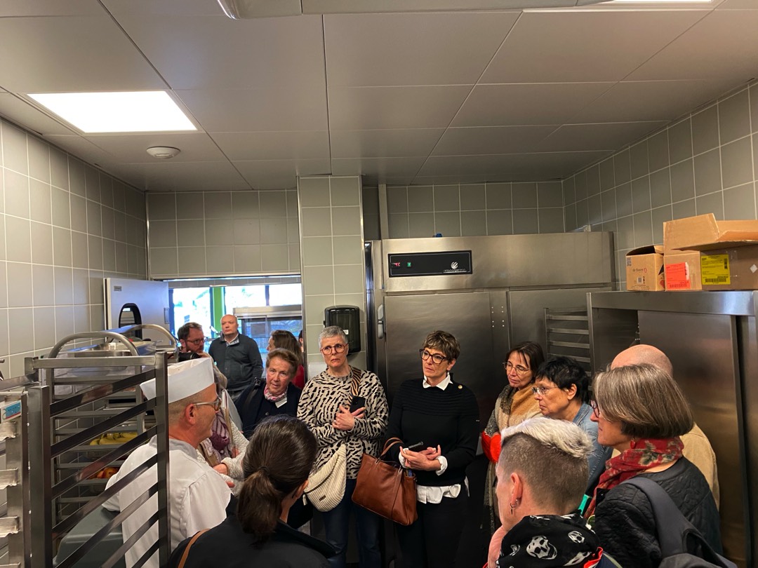 Les visiteurs ont dégusté un repas entièrement local et bio, préparé à partir de produits fournis par les exploitations partenaires. Ils ont ensuite découvert les cuisines du lycée pour comprendre concrètement comment s’organise l’approvisionnement en circuits courts.