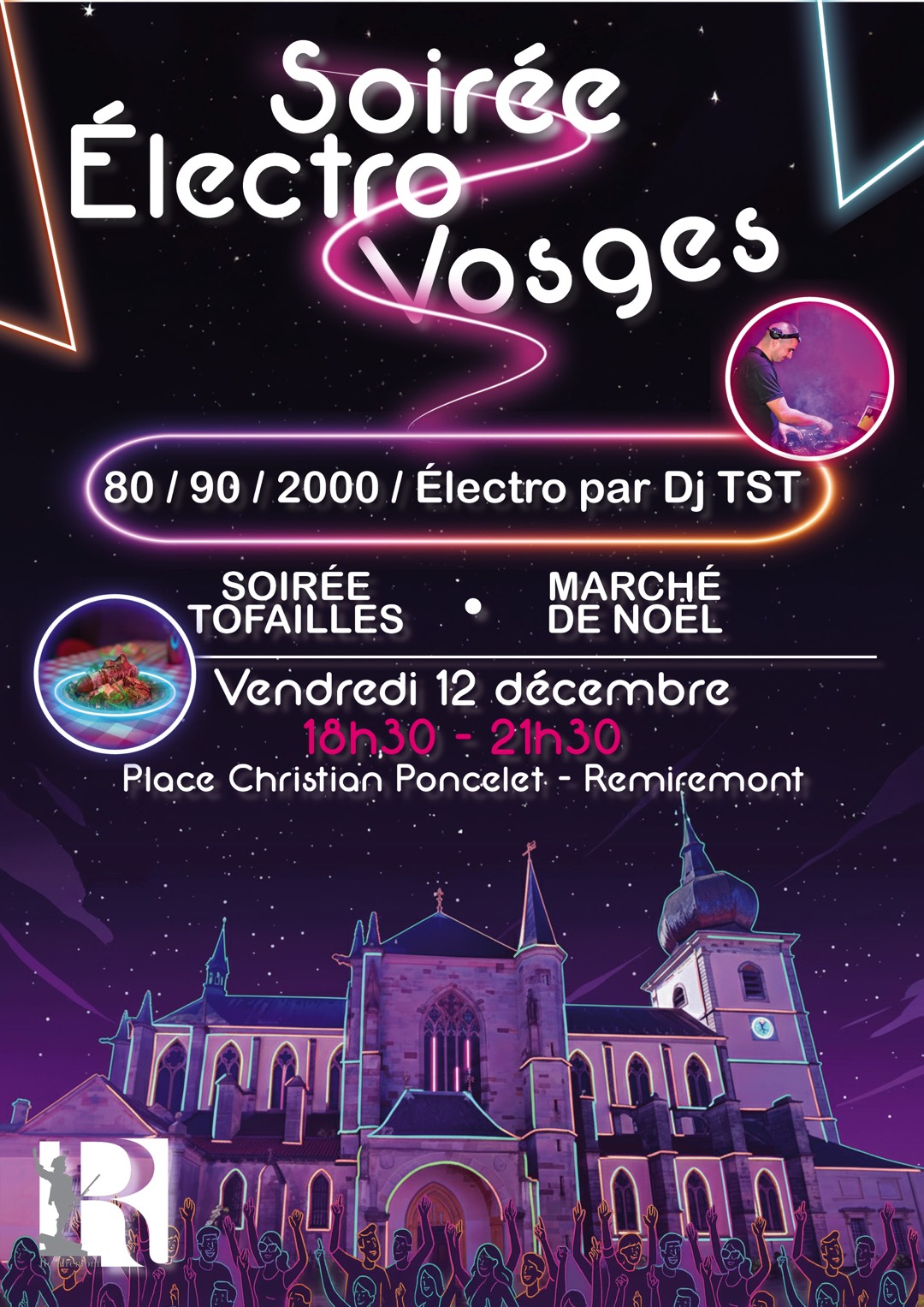 Le Marché de Noël de Remiremont ajoute une nouveauté à son programme avec la soirée Électro-Vosges, un rendez-vous festif qui associe DJ, tubes des années 80 à 2000 et tofailles vosgiennes, vendredi 12 décembre place Christian Poncelet.