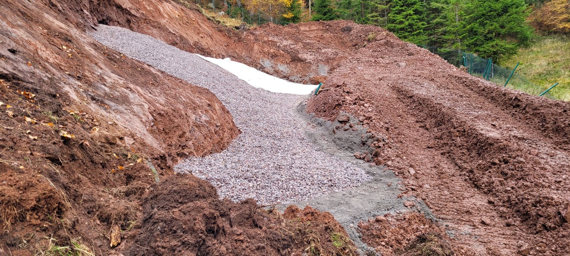 Le chantier a débuté le 14 octobre sous la maîtrise d’ouvrage de l’Agglomération et la conduite technique de l’entreprise Hydr’Eau Services, installée à Fraize. Après l’aménagement du chemin d’accès et la préparation des terrassements pour repérer les émergences d’eau dans la roche, les équipes ont procédé à la pose de drains et d’un massif drainant.