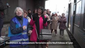 Arrivée du premier train reliant Lyon à Nancy via Neufchâteau ce dimanche matin, avec le nouveau cadencement. Une fête pour l’association d’usagers ADURNE, qui s’est battue pour le retour de la liaison nord-sud. L’an dernier, ses membres ont vu leurs efforts récompensés par le retour d’un aller-retour journalier ; dorénavant, l’Ouest vosgien bénéficiera de deux allers-retours. Un service à pérenniser et à améliorer pour les représentants cheminots, les usagers et les élus.