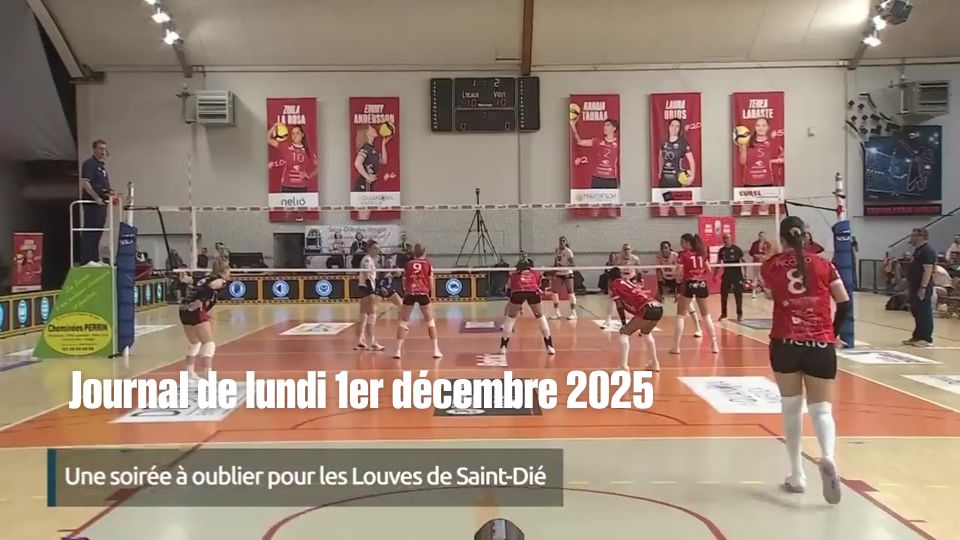 Football : l'US Raon l'Etape (R1) qualifiée pour les 32ème de finale de la coupe de France après sa victoire face au FC Mulhouse (N3) aux tirs au but / Volley (LAF) les Louves s'inclinent face à Chamalières (3-1) / Hockey (D1) les Wildcats d'Epinal se relancent face à Chambéry (5-2) / Run & Bike de Vittel : nouvelle victoire des frères Wertz / Championnats Grand Est FFKMDA de muay-thaï à Epinal / 1er cross-country de la saison à Uriménil / Côté Sports avec Lisa Arbos, Michäel Grand & Anthony Perchat